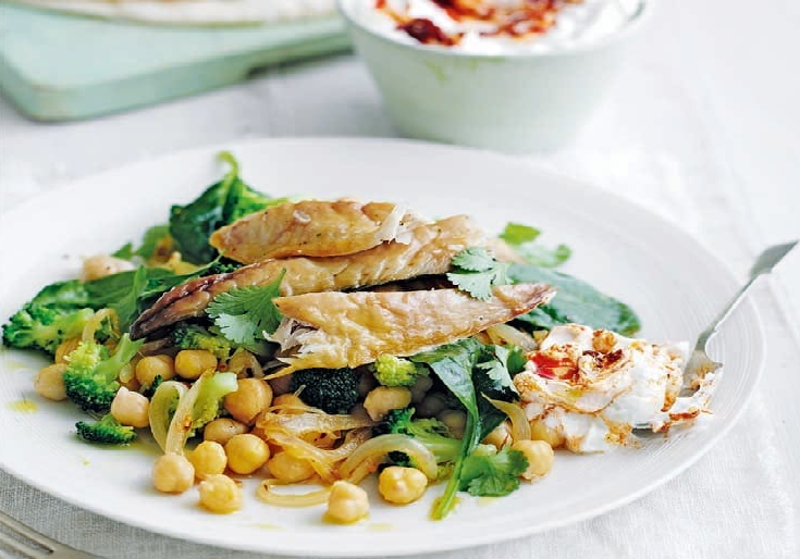 Dit recept is gebaseerd op Smoked Mackarel with Warm Chickpea Salad uit Delicious Magazine
